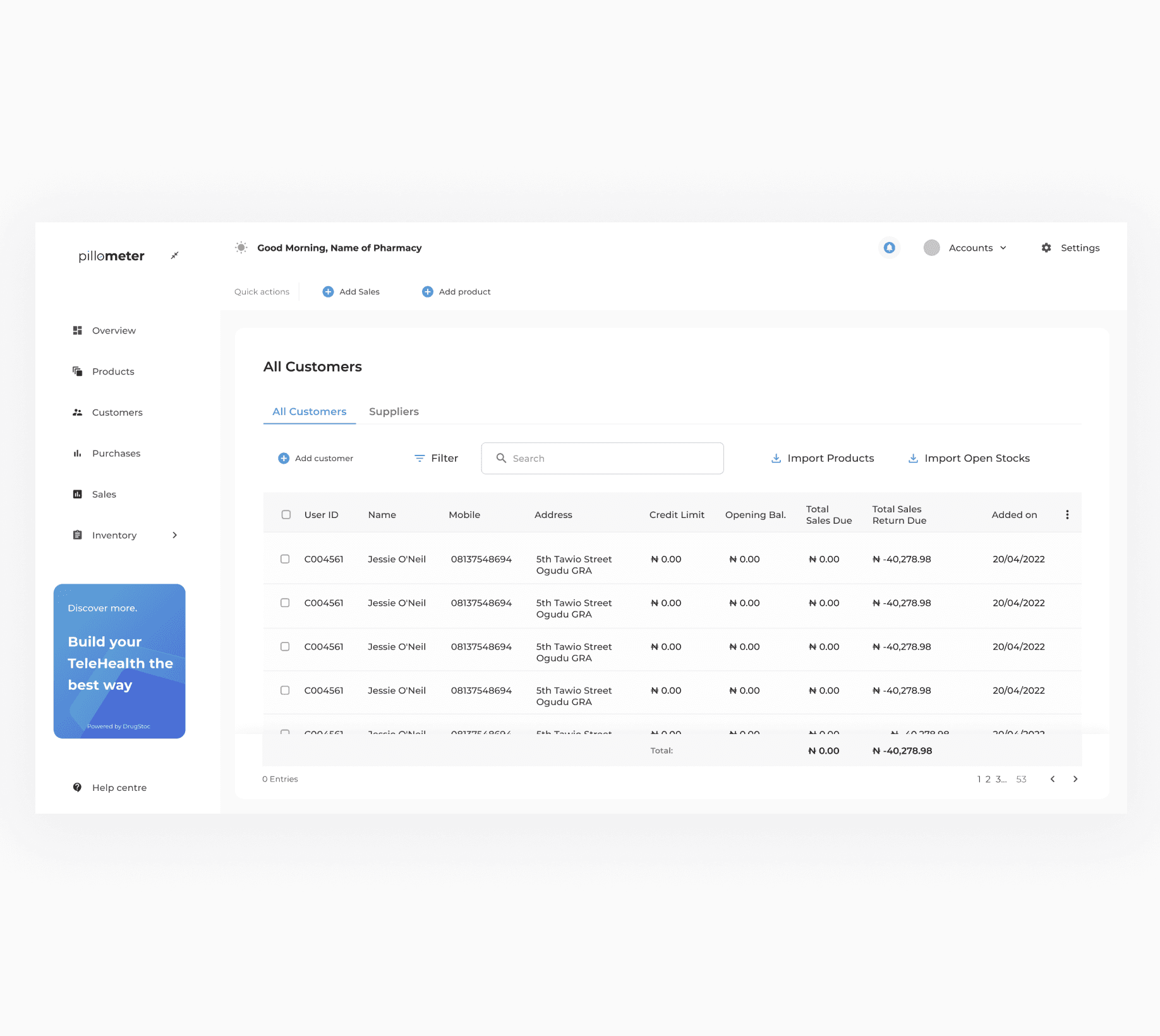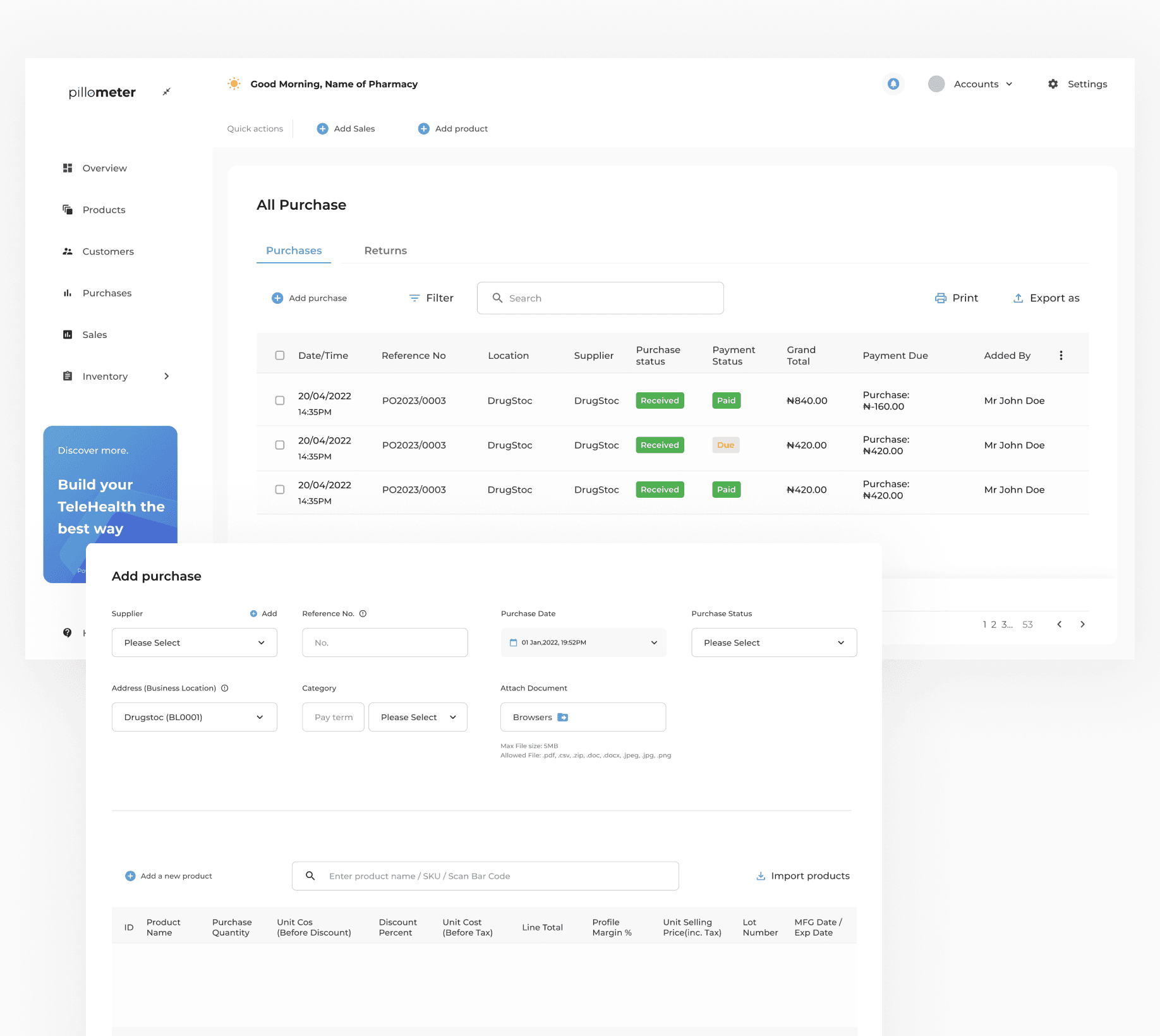 Also an inventory system to manage and keep track of these pharmaceutical organisations. WebApp