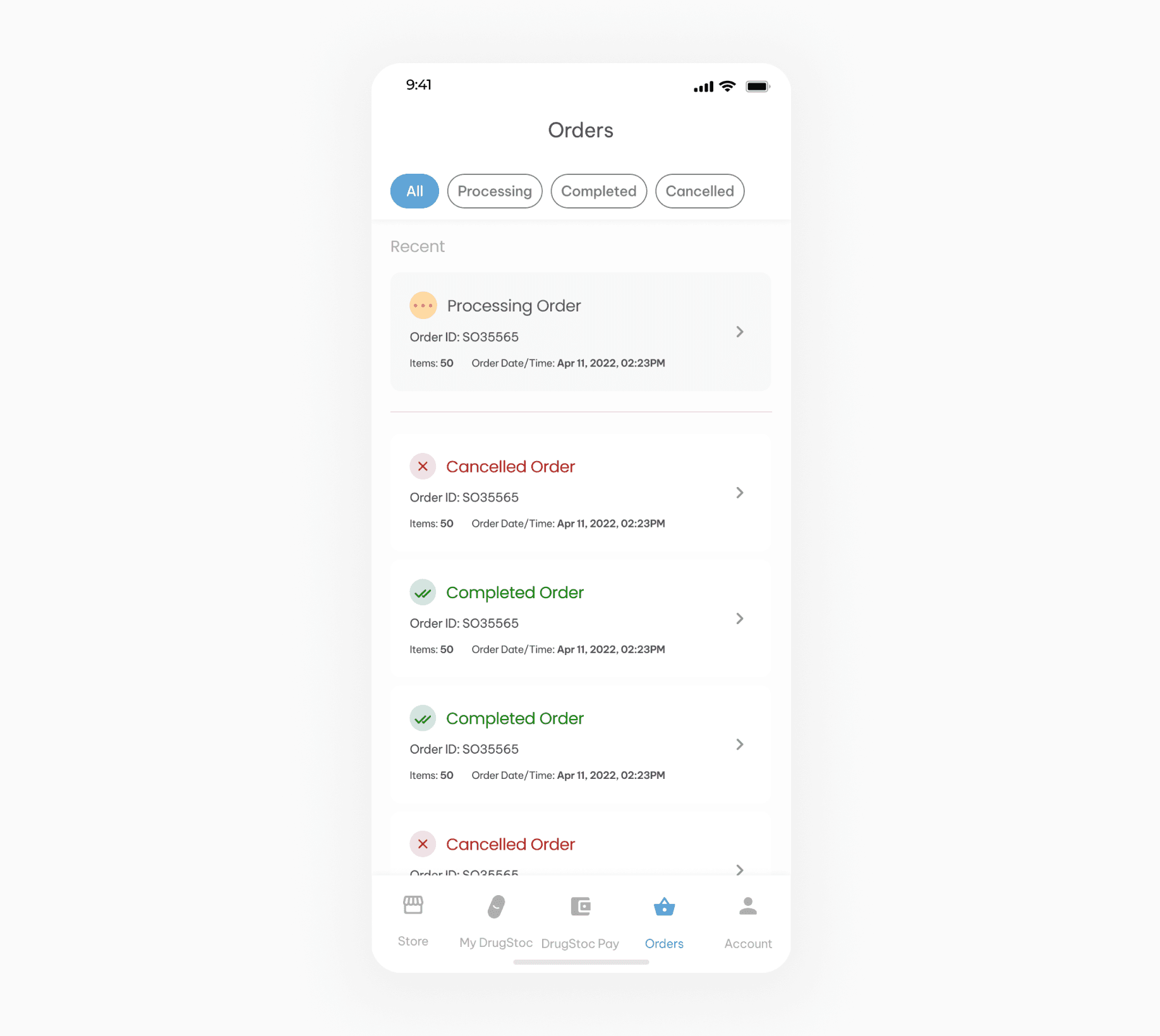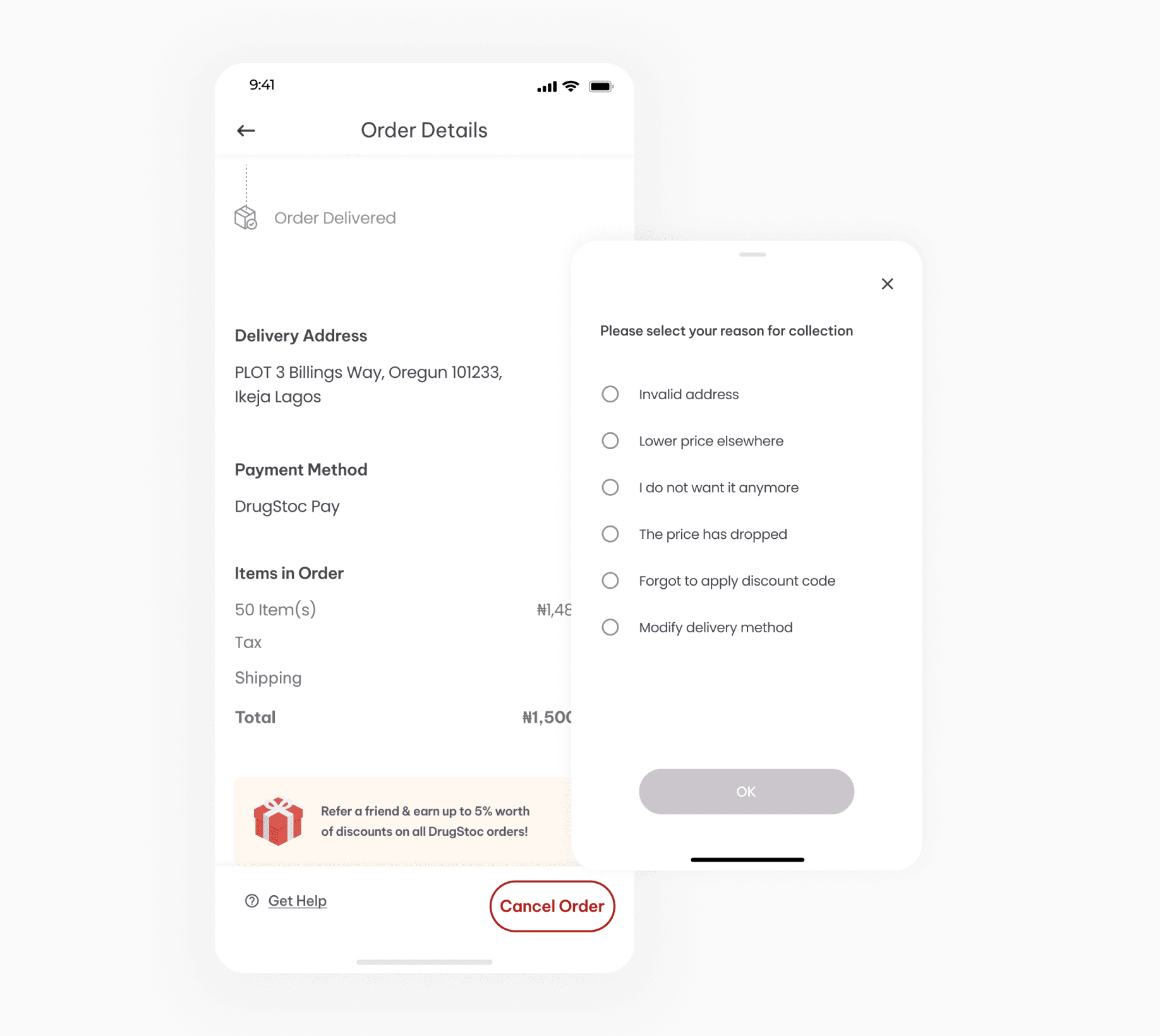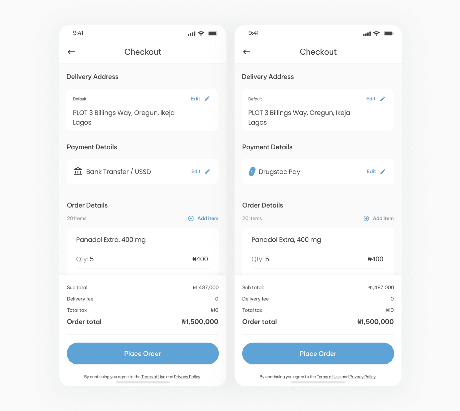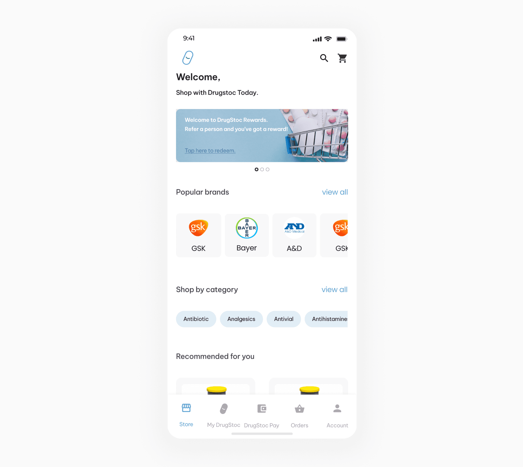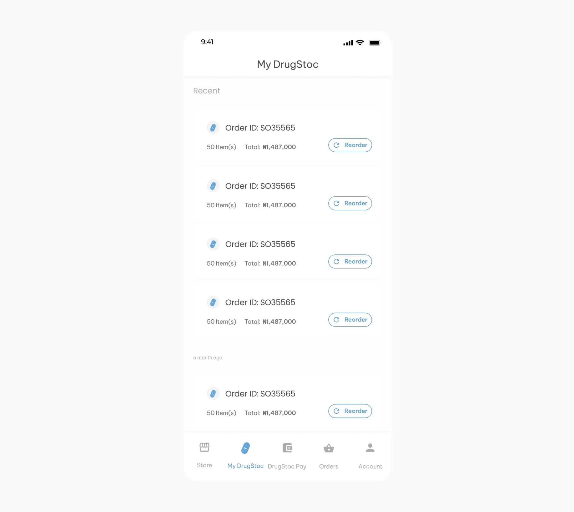 The DrugStoc mobile app redesign was focused mainly on the overall app experience, adding more features such as DrugStoc Pay, better Order management for consistent and quick re-ordering and Check out.