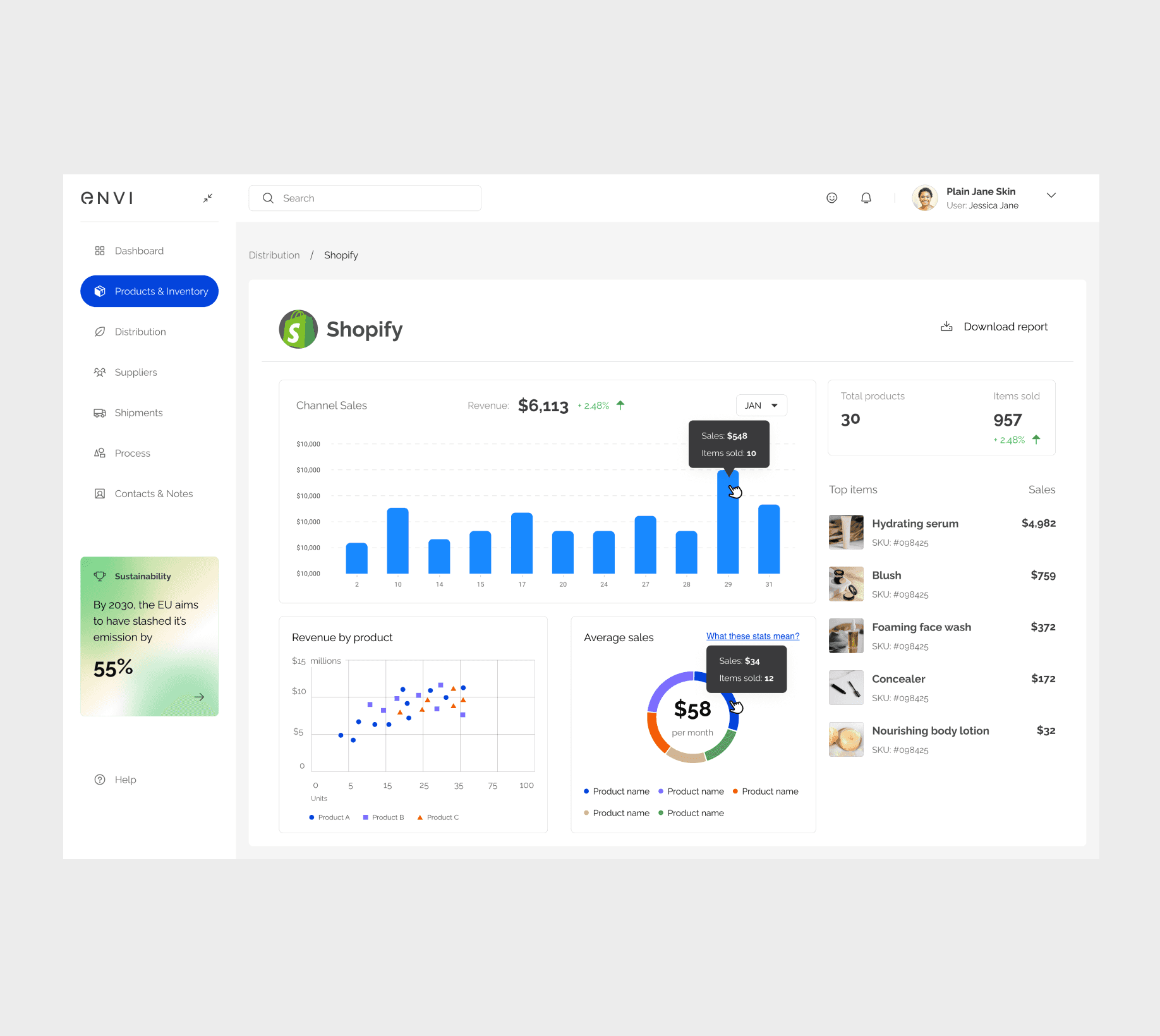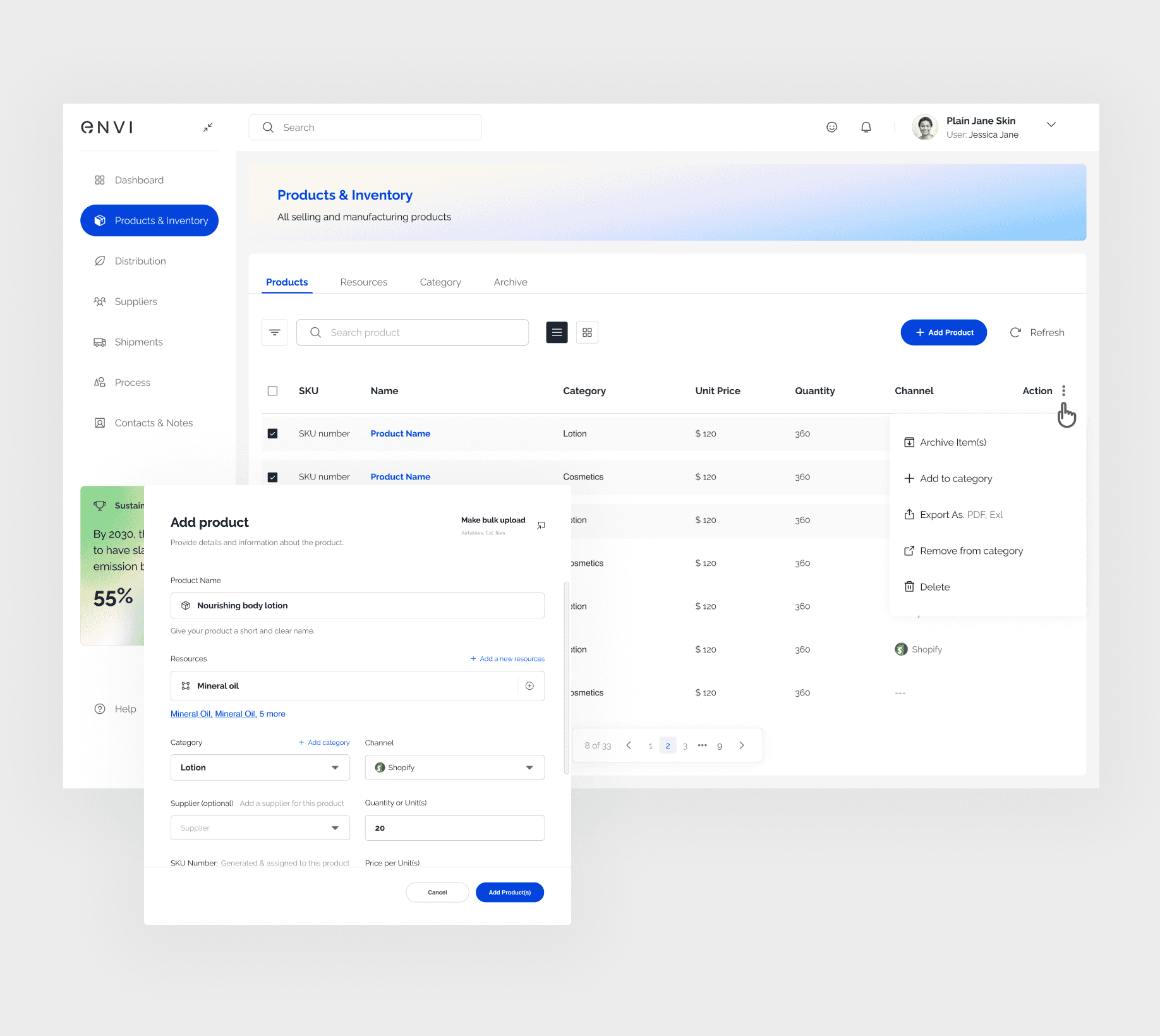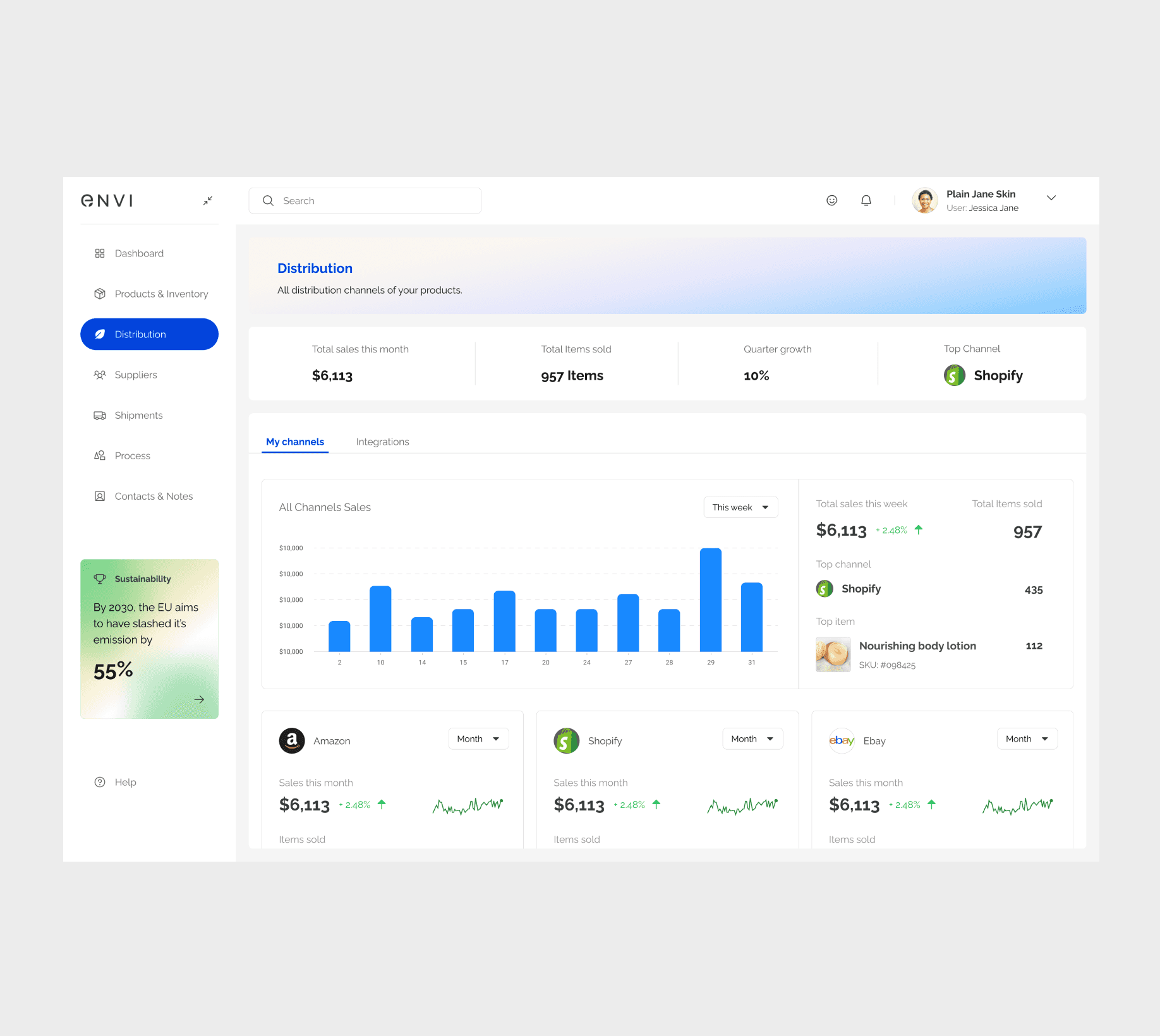 Envi is an ERP (Enterprise resource planning) web-application for small business to capture their supply-chain including: product and inventory, distribution channels, transportation from vendors and to buyers, manufacturing data. And access analytics across their distribution channels.