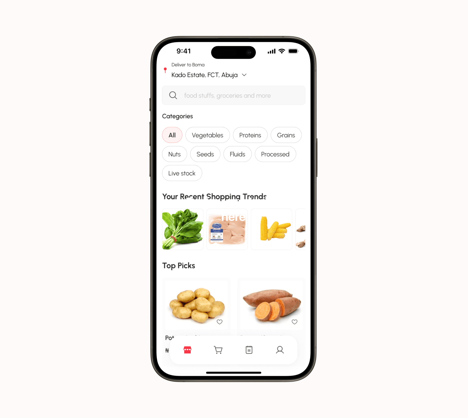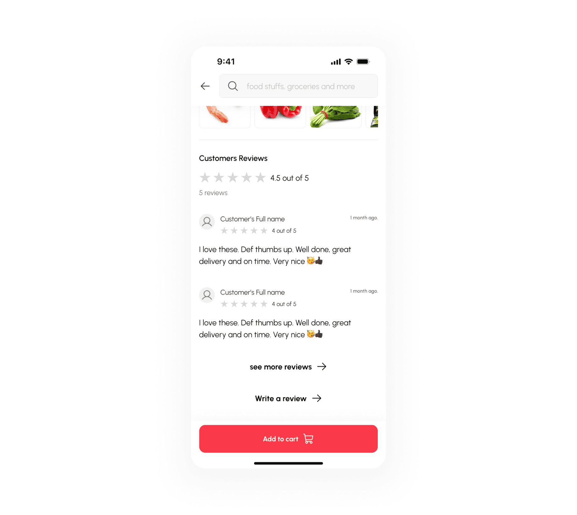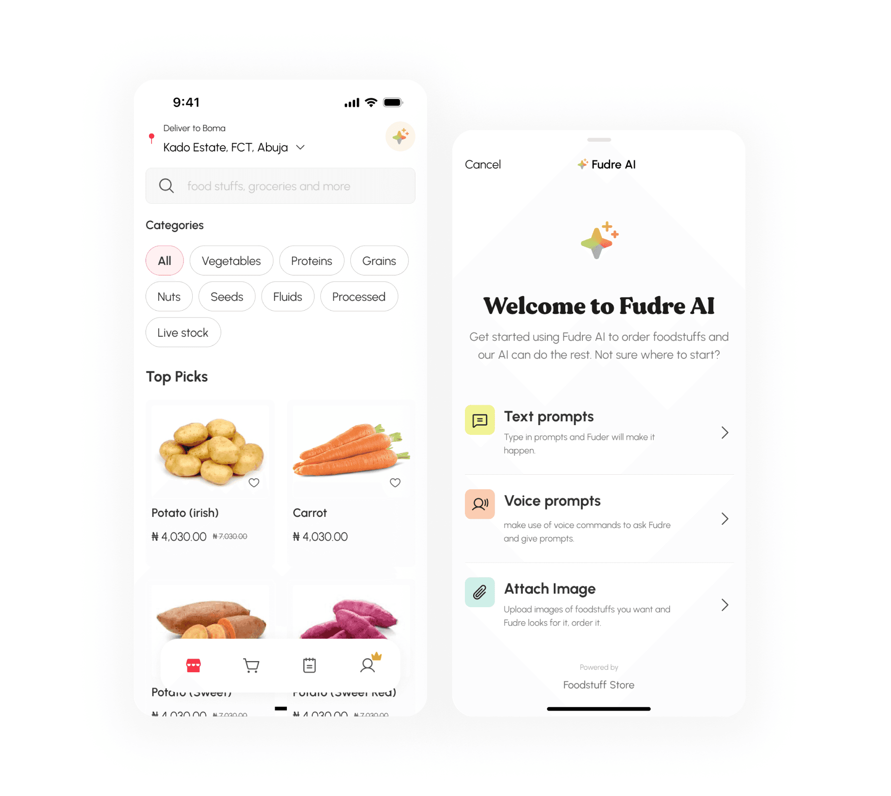 Foodstuff Store provide a seamless and personalised shopping experience for users looking to purchase fresh food and groceries which are soured from local small businesses and farms.